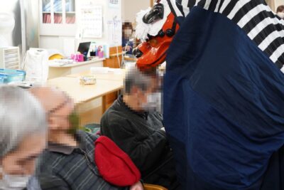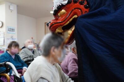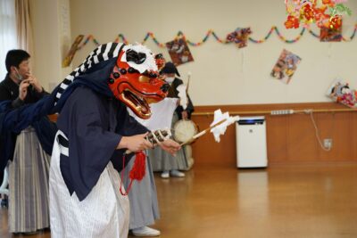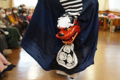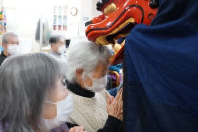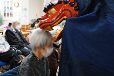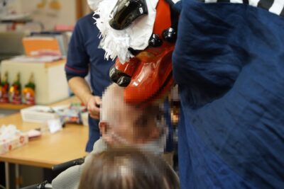 素晴らしい舞が終わると、利用者の方の頭を嚙んでいただき悪魔祓いや
